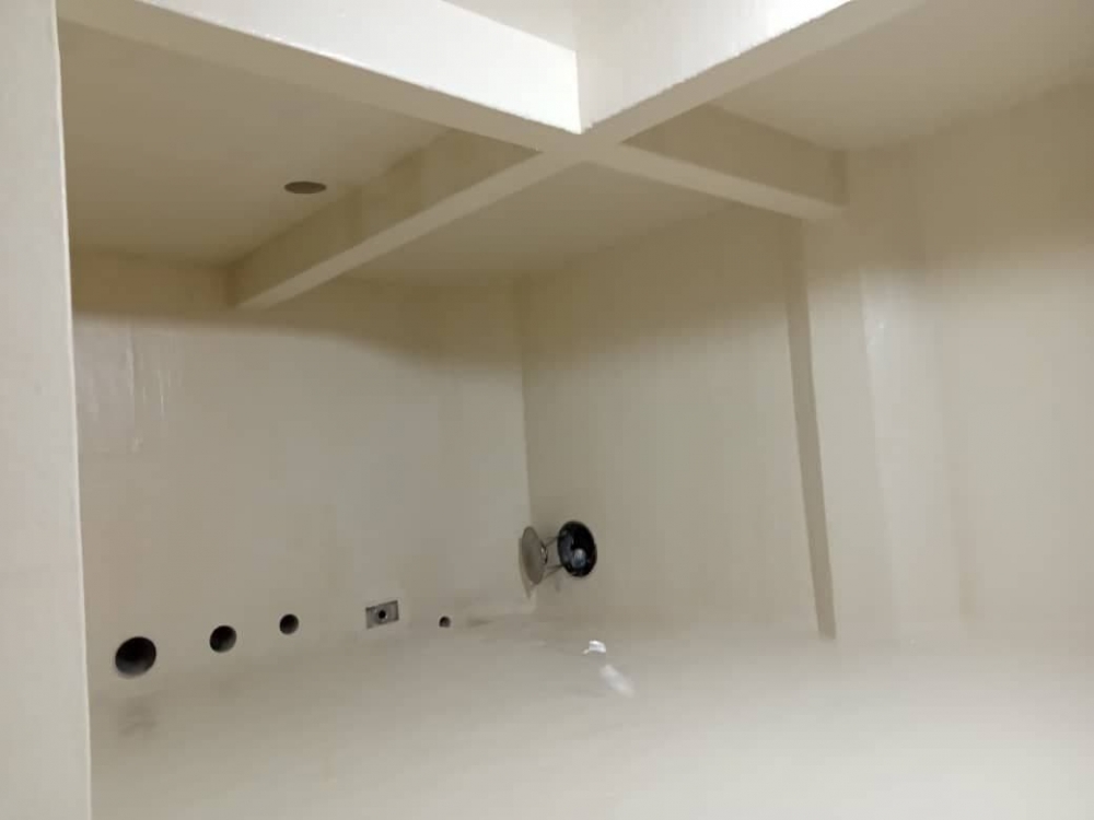 Lastly, fiberglass lamination can be done for the flooring of rooftops or toilet flooring. This is to provide a waterproofing layer to the concrete. After the concrete wall is casted, fiberglass lamination can be applied, and then the concrete tank can be used as a water tank inner layer.